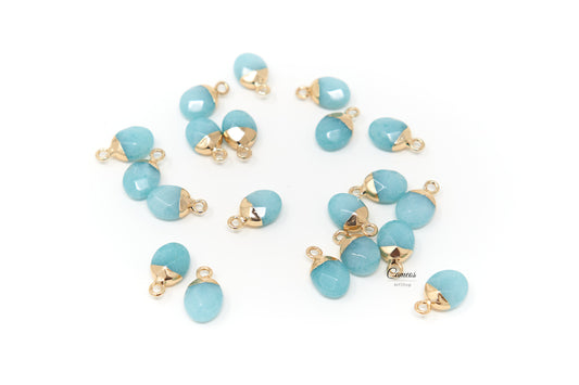 Natural Jade Gemstone Charms, 14mm Faceted Oval Golden Stone Pendants, 1pcs