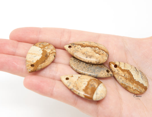 Natural Picture Jasper Flat Back Drop Pendant Size 33mm, 1 pcs