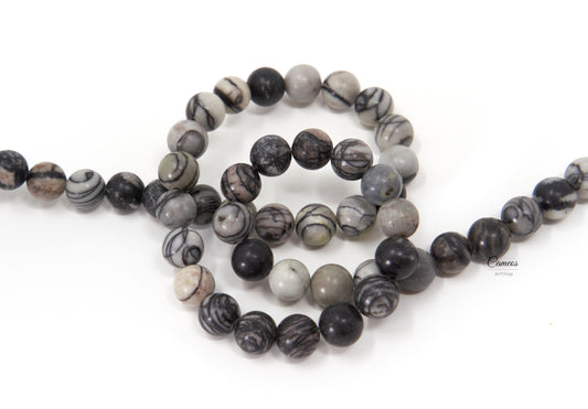 Black Silk Netstone Beads, 8mm Black and White Beads, Natural Gemstone Beads, 10 pcs