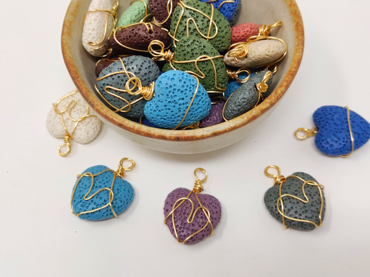 Lava Gemstone Beads Copper Wire Wrap Pendant Necklace Charm, 1pcs