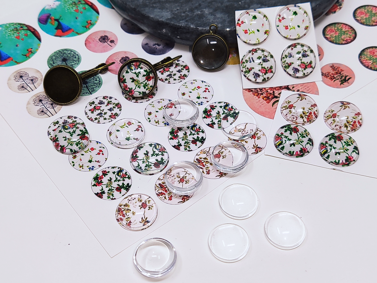 These cabochons have flat back so you can glue them in to different blank pendant trays, ring settings, earring blanks and hooks. Glass cabochons are perfect choice for jewelry making, scrapbooking or even for magnet making.