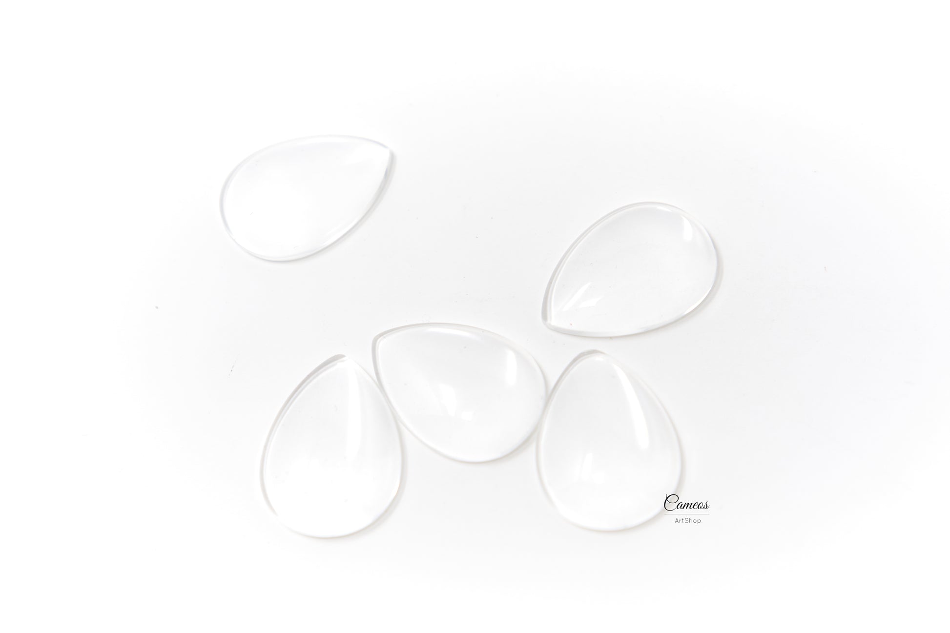 You will get 20 pcs clear teardrop glass cabochons in size 18x25mm.