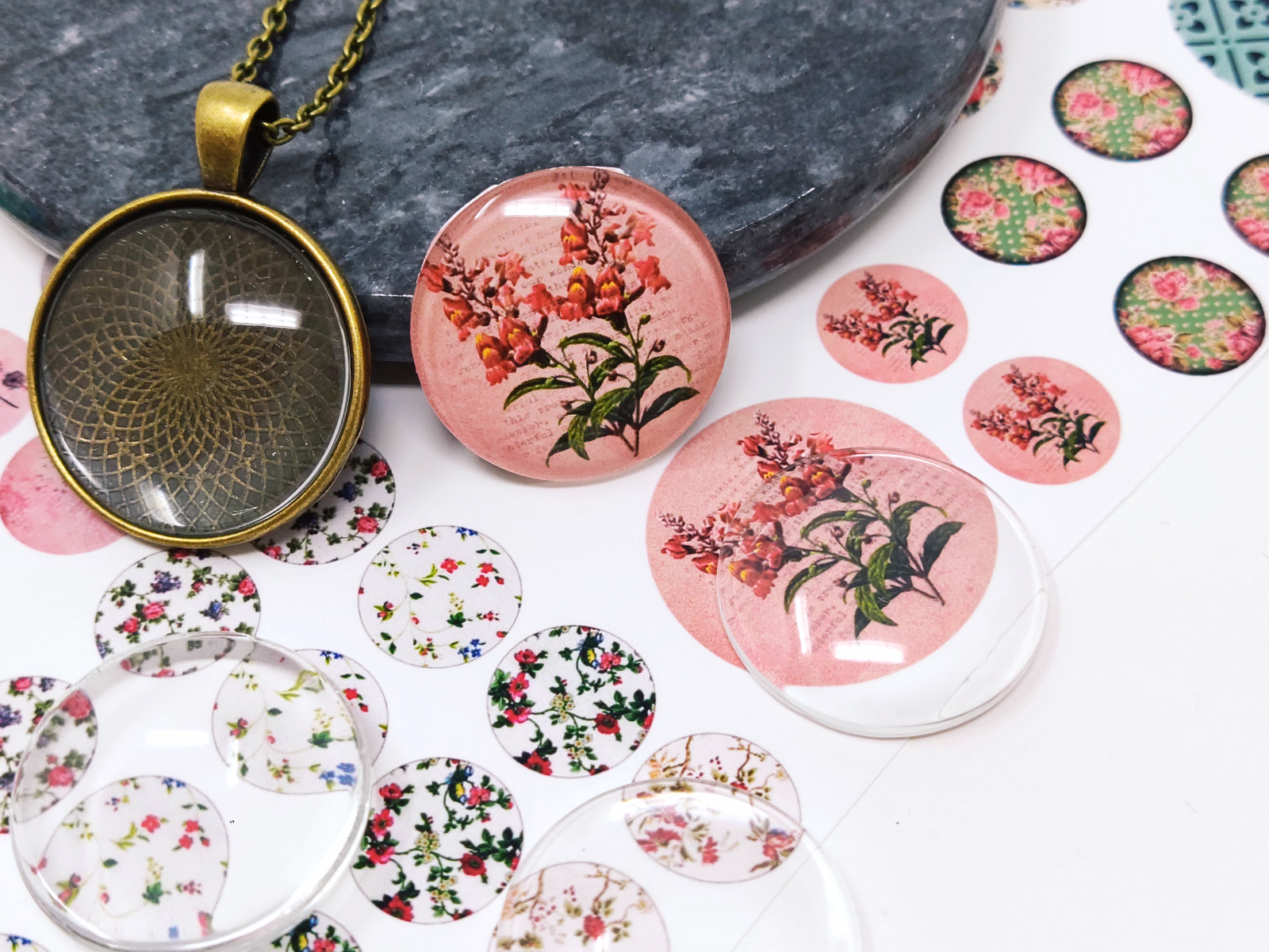 These cabochons have flat back so you can glue them in to different blank pendant trays, ring settings, earring blanks and hooks. Glass cabochons are perfect choice for jewelry making, scrapbooking or even for magnet making.