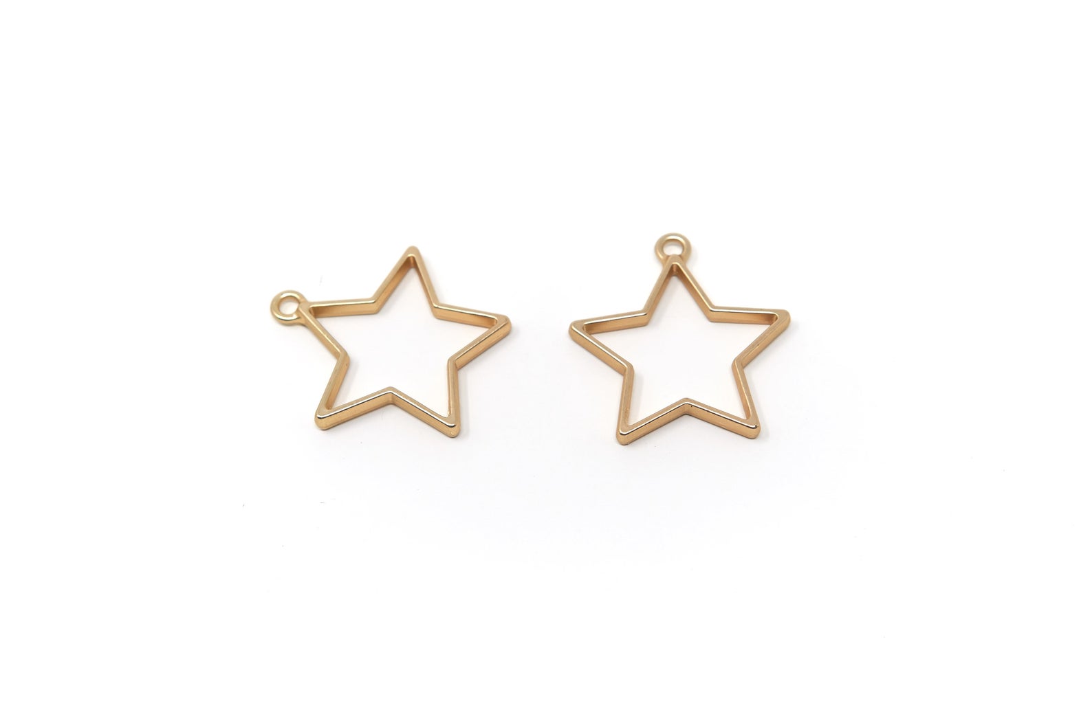 You will get 3 pieces matte style rack plating alloy star open back bezel pendants, for DIY resin, pressed flower jewelry in matte golden color.