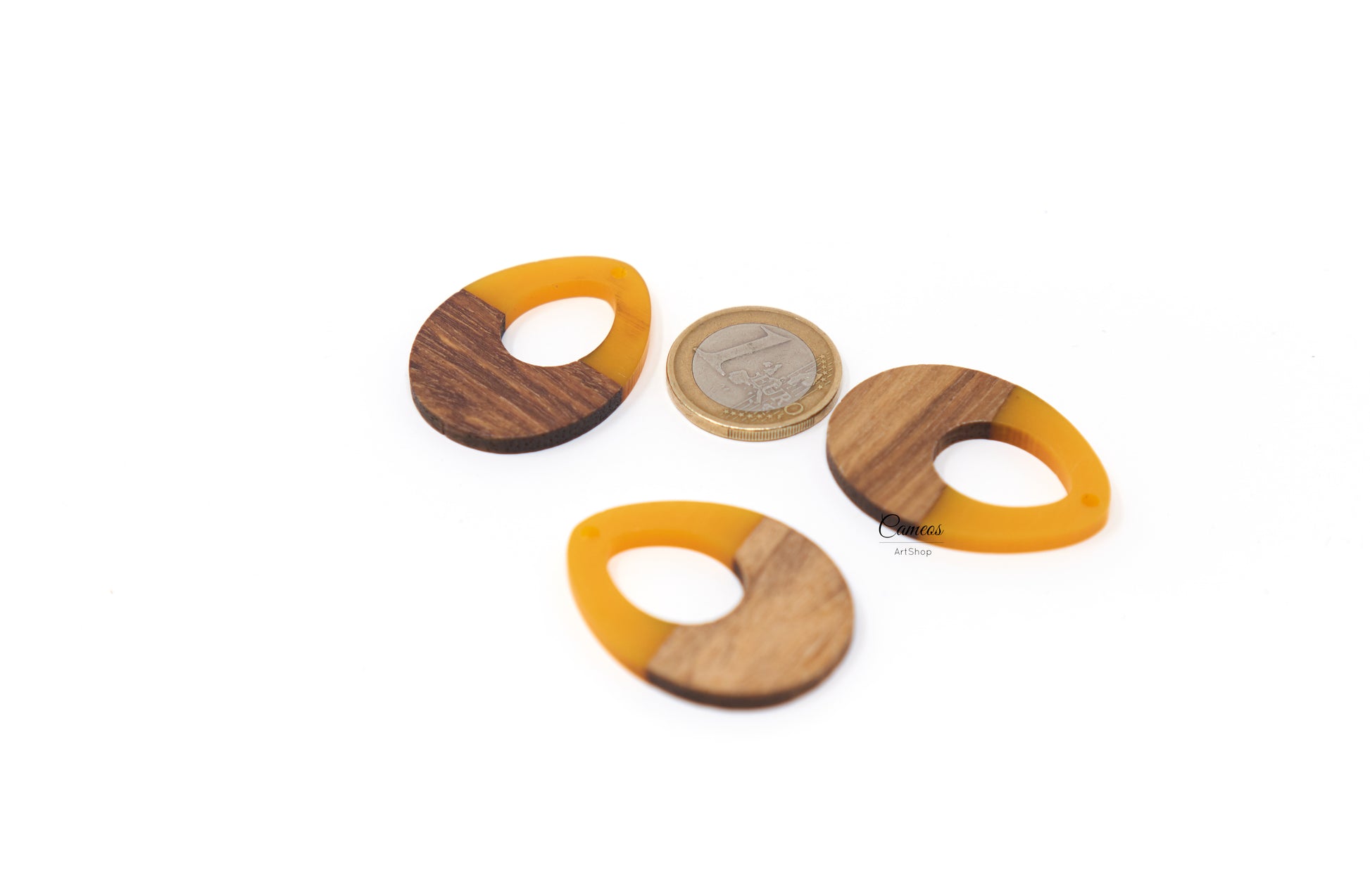 Teardrop Wooden Resin Earrings Circles ; Real Sliced Wood; Wood Resin Pendant; Yellow Charm ; Jewelry Making