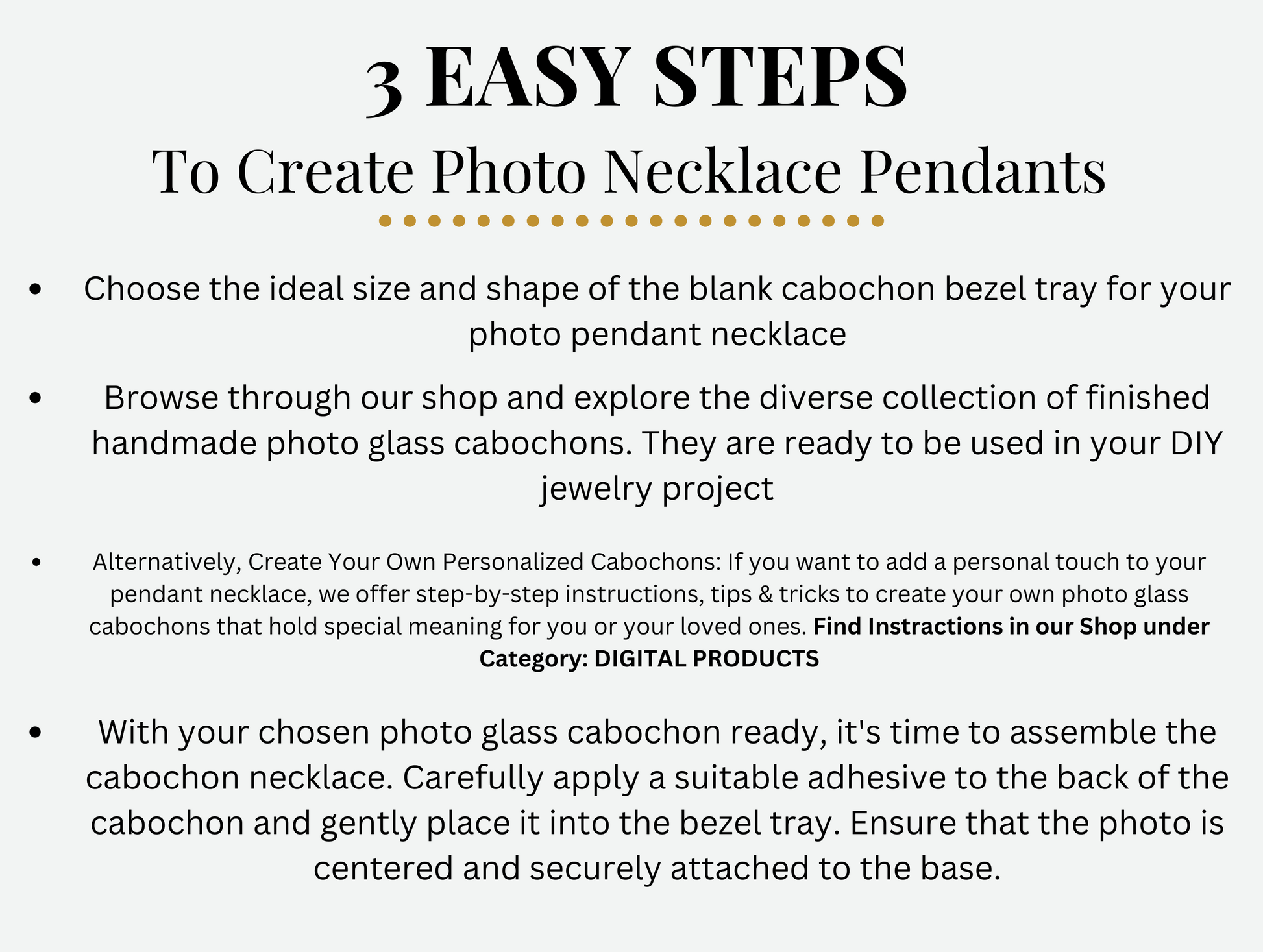 Perfect Gift: These dome-shaped glass cabochons are perfect for making handmade photo jewelry or unique and thoughtful DIY gift for your loved ones. With this cabochons you can create the perfect gift for a Birthday, Mother's Day, Christmas, Anniversary or just a treat for yourself!
