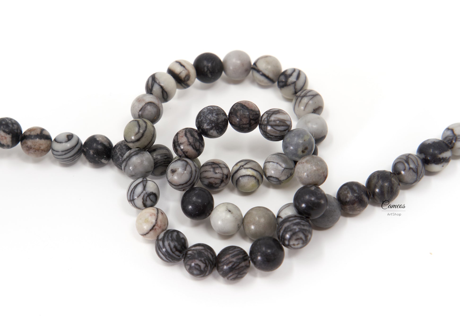 Black Silk Netstone Beads, Natural Gemstone Beads, Round Loose Stone Beads For Jewelry Making 8mm, 8mm Black and White Beads, Beading Supplies