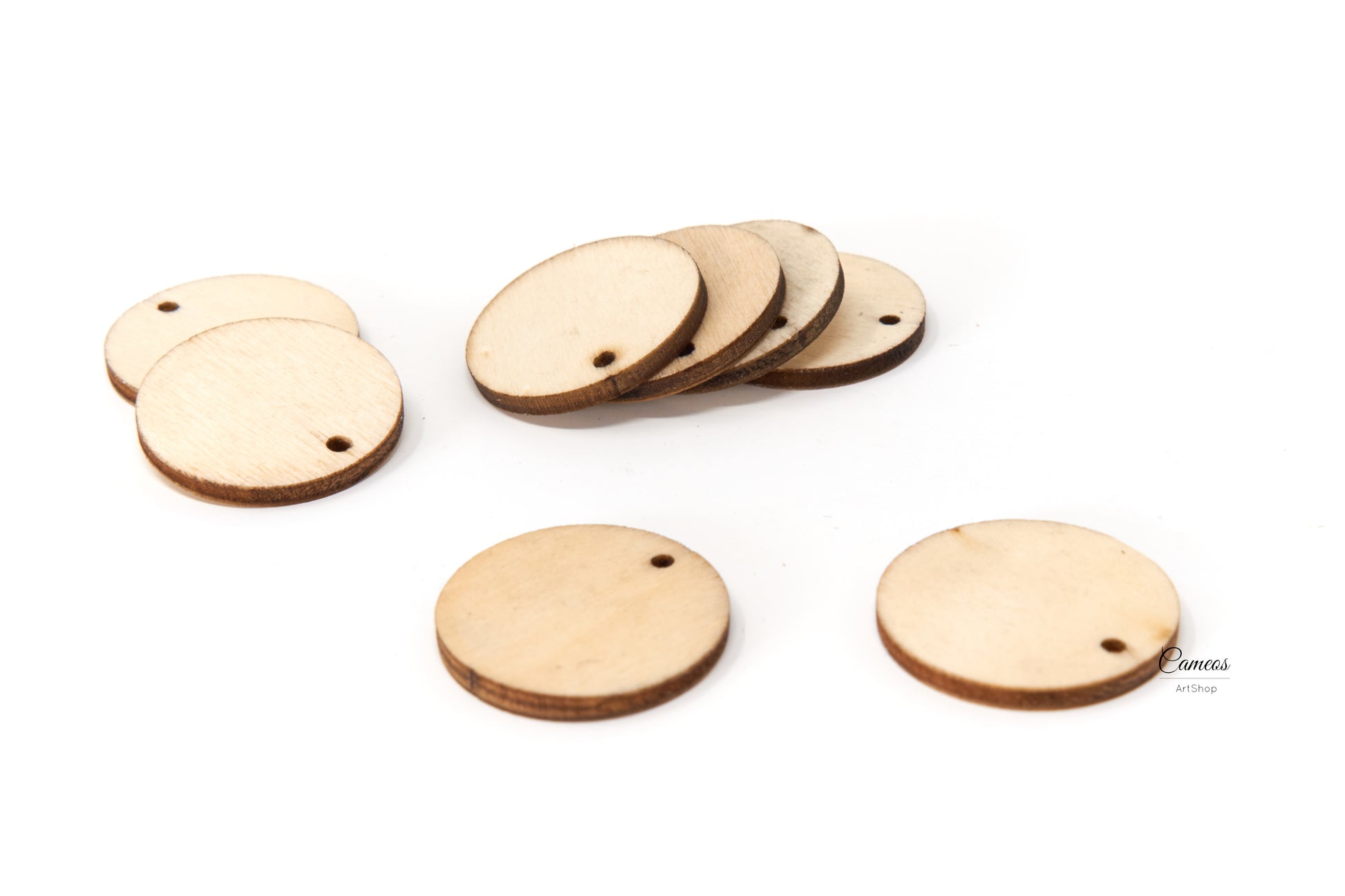 You will get 10 pieces of flat round wooden pendant cabochon settings 24.5x3mm, hole: 2mm